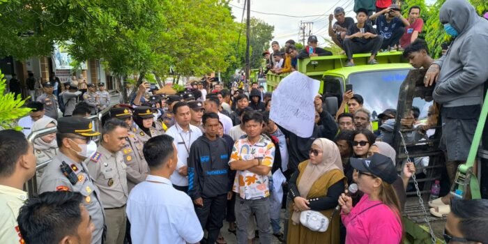 maleonews.com, Kota Gorontalo –Ratusan massa menggelar aksi demonstrasi panas di depan Kantor Badan Pertanahan Nasional (BPN) Kota Gorontalo, Senin, 6 April 2026.
