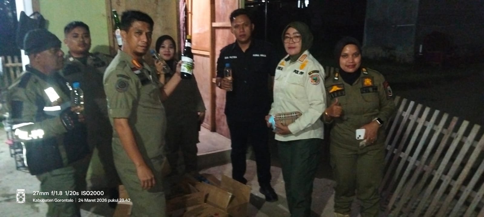 Razia yang digelar pada Selasa malam, 24 Maret 2026, menyasar sejumlah titik rawan di Kecamatan Limboto Barat, Tibawa, hingga Tilango. Petugas bergerak cepat menindaklanjuti laporan warga terkait aktivitas penjualan minuman beralkohol di kios maupun tempat hiburan malam.