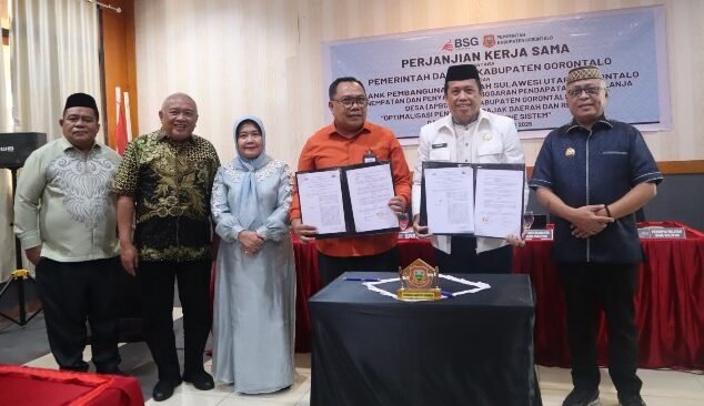 maleonews.com, Gorontalo — Pemerintah Kabupaten (Pemkab) Gorontalo resmi menjalin kerja sama strategis dengan PT Bank Pembangunan Daerah Sulawesi Utara Gorontalo (Bank SulutGo/BSG) dalam rangka mempercepat digitalisasi tata kelola keuangan daerah. Kerja sama tersebut mencakup pengelolaan Anggaran Pendapatan dan Belanja Desa (APBDes) serta optimalisasi pajak dan retribusi daerah secara daring.