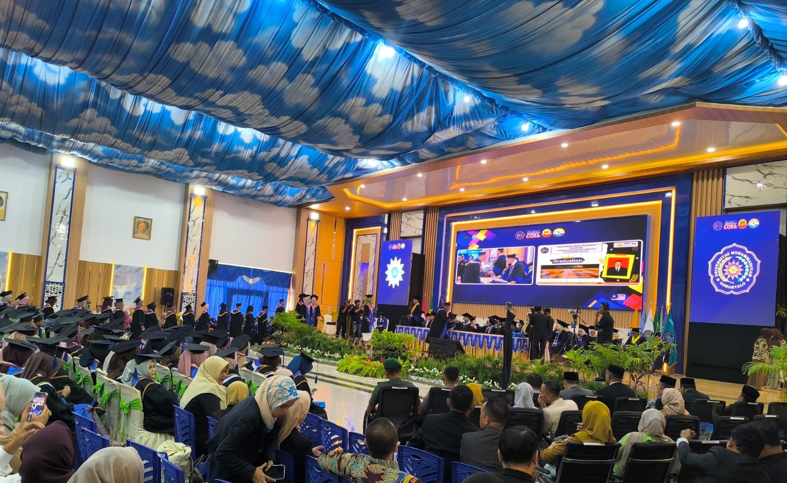 Prosesi wisuda dipimpin langsung oleh Rektor UMGO, Prof. Dr. Abd. Kadim Masaong, M.Pd., yang mengesahkan lulusan dari jenjang sarjana, magister, hingga profesi dari sejumlah program studi.